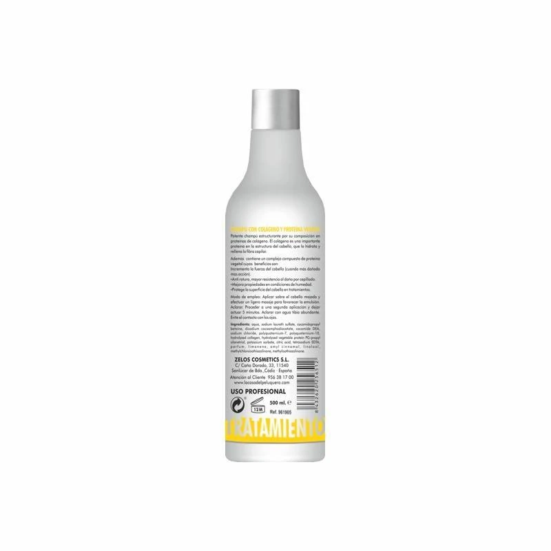 El Champú Zelos con Colágeno y Proteína Vegetal se trata de un champú de tratamiento con un potente efecto estructurante debido a su composición en proteínas de colágeno y queratina, que son muy importantes en la regeneración capilar. Fortalece el cabello haciéndolo más resistente, hidrata y devuelve la vitalidad proporcionando elasticidad al cabello. Combate el encrespamiento y rellena la fibra capilar. Está indicado para cabellos quebradizos, sin brillo o débiles. Es un producto de uso profesional.