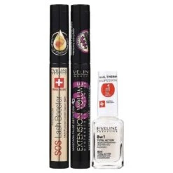 | El set incluye SOS SERUM 5EN1PARA PESTAÑAS CON ACEITE DE ÁRGAN NAIL THERAPY ACONDICIONADOR 8EN1 TOTAL ACTION 12 ML MASCARA EXTENSION VOLUME THICKEN&SEPAR. |
