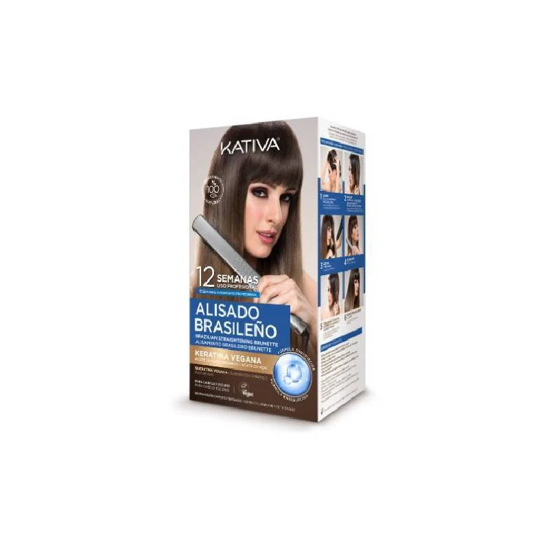 Tratamiento alisador sin formol, especialmente indicado para cabello oscuro, con resultados profesionales que perduran hasta 12 semanas.